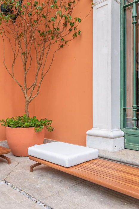 O pufe Zoe foi inspirado em formas da natureza, com a delicadeza de seus perfis que nos lembram galhos de árvore. Seu desenho leve e rico em cantos e bordas arredondadas, e a base suspensa do chão, resultam numa peça de mobiliário perfeitamente integrada aos ambientes externos. O assento com almofada solta em fibra siliconada garante o conforto desta peça. É uma peça versátil que pode ser utilizada tanto como banco quanto como mesa de centro.