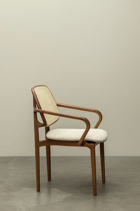 A proposta da cadeira Cristal é a transparência. Com encosto revestido em palhinha, solto do assento, e grandes braços vazados, Cristal é uma presença sutil, pois nos permite olhar através de si. Detalhes como os encaixes sinuosos de madeira e as leves curvas do assento destacam o conforto. É perfeita para a composição de ambientes arejados, onde a sutileza seja a expressão suprema do design.
