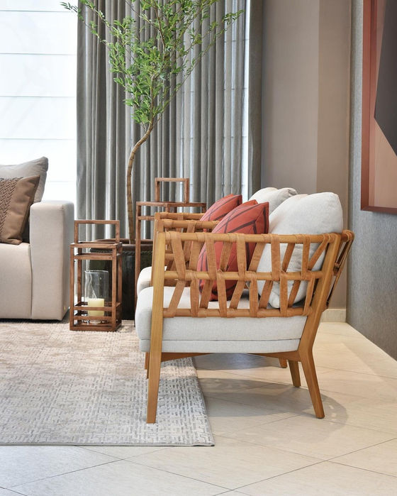 Para a poltrona Zilda buscamos exprimir toda a força e generosidade da grande mulher que ela foi, além do olhar cheio de amor e bondade, refletido no conforto e desenho fluído da peça. As amarrações do braço e encosto foram inspiradas no tecido usado para a pesagem das crianças nas visitas da pastoral nas comunidades.