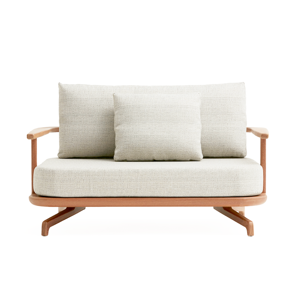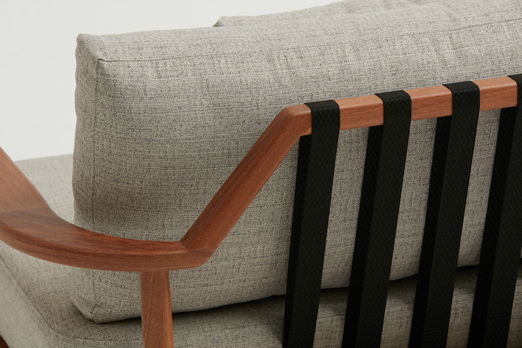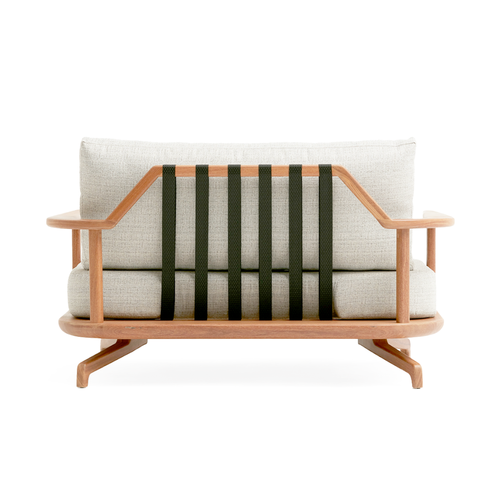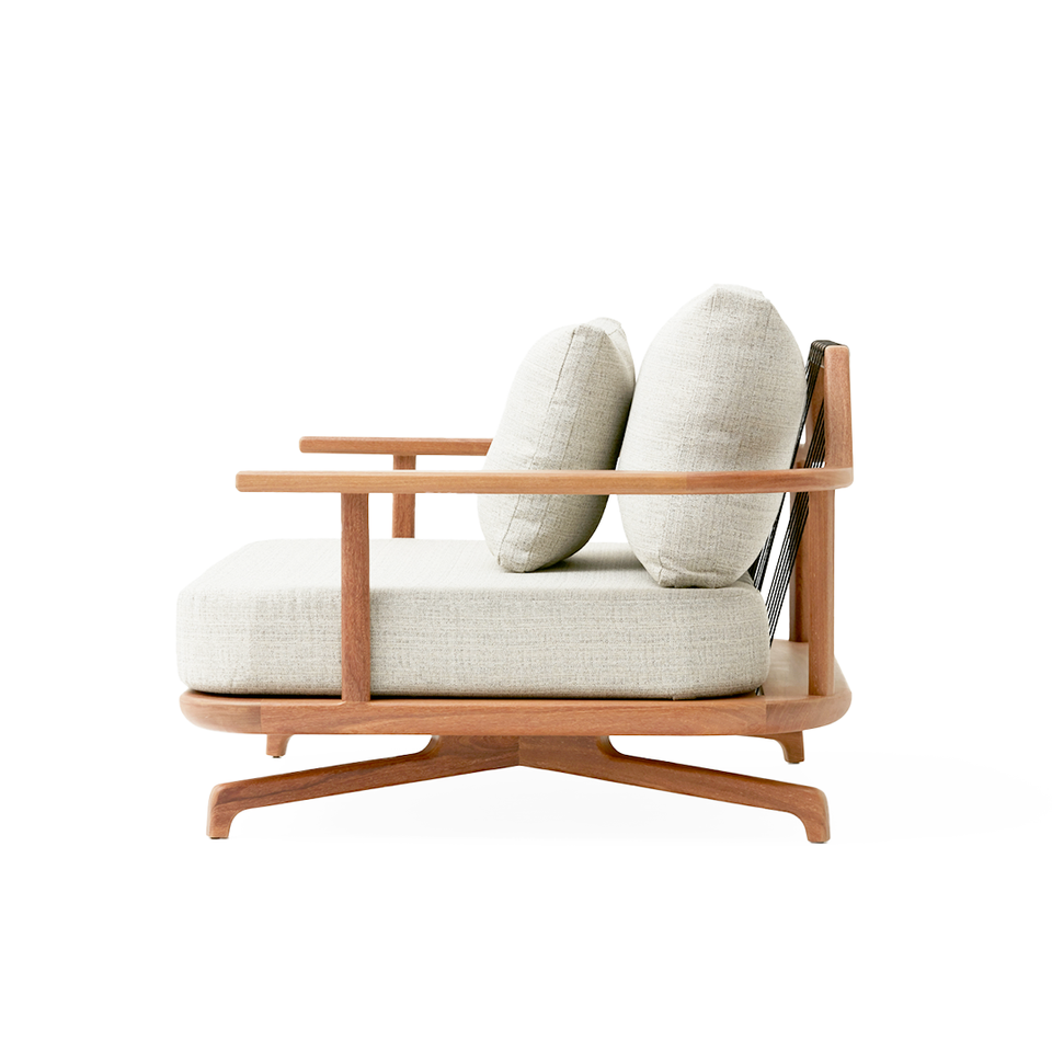 A poltrona Zoe foi inspirada em formas da natureza, com a delicadeza de seus perfis que nos lembram galhos de árvore. Seu desenho leve e rico em cantos e bordas arredondadas, e a base suspensa do chão, resultam numa peça de mobiliário perfeitamente integrada aos ambientes externos. O encosto com cintas de poliéster e as almofadas soltas em fibra siliconizada garantem o conforto desta peça.